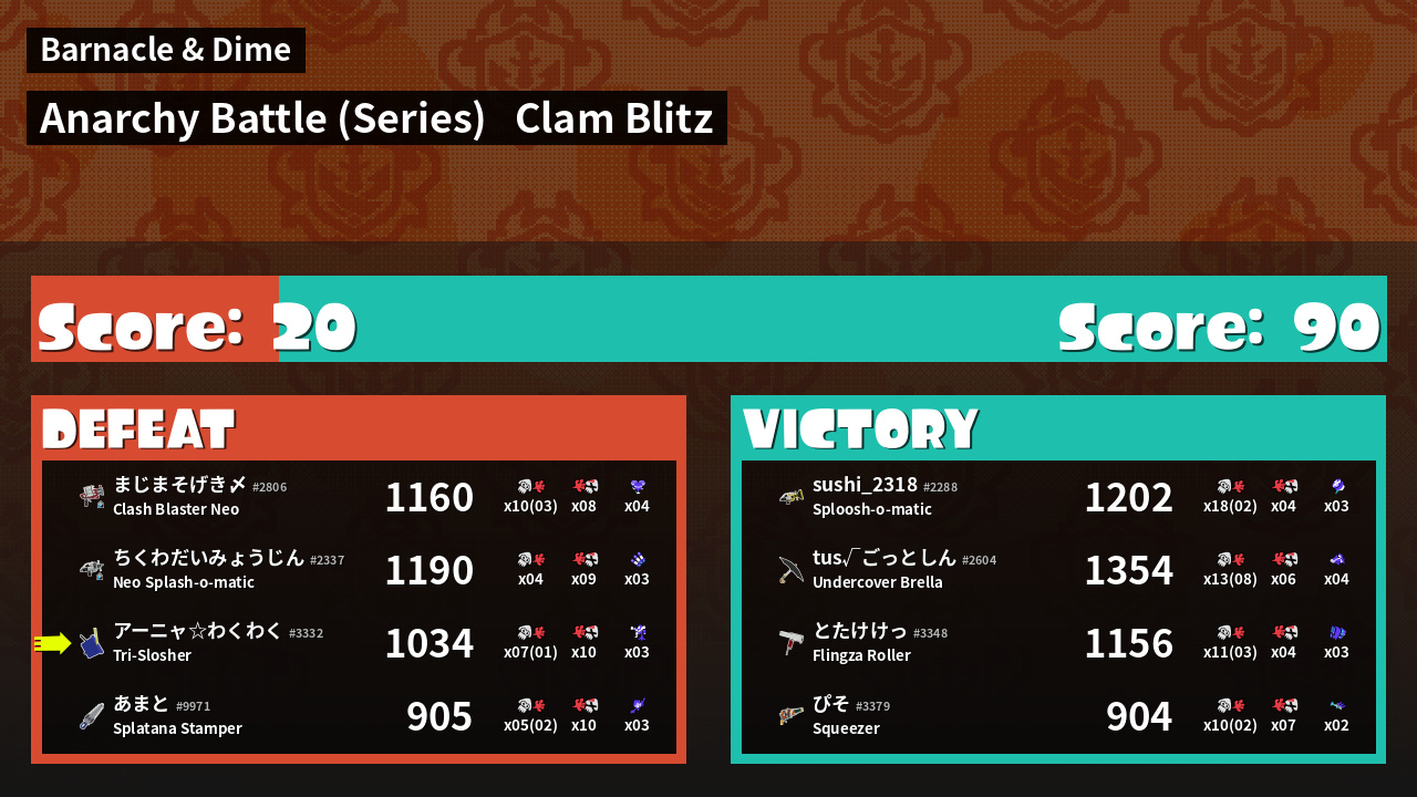 | Mode | Clam Blitz - Anarchy Battle (Series) | ||