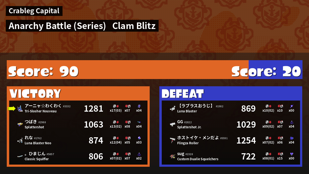 | Mode | Clam Blitz - Anarchy Battle (Series) | ||