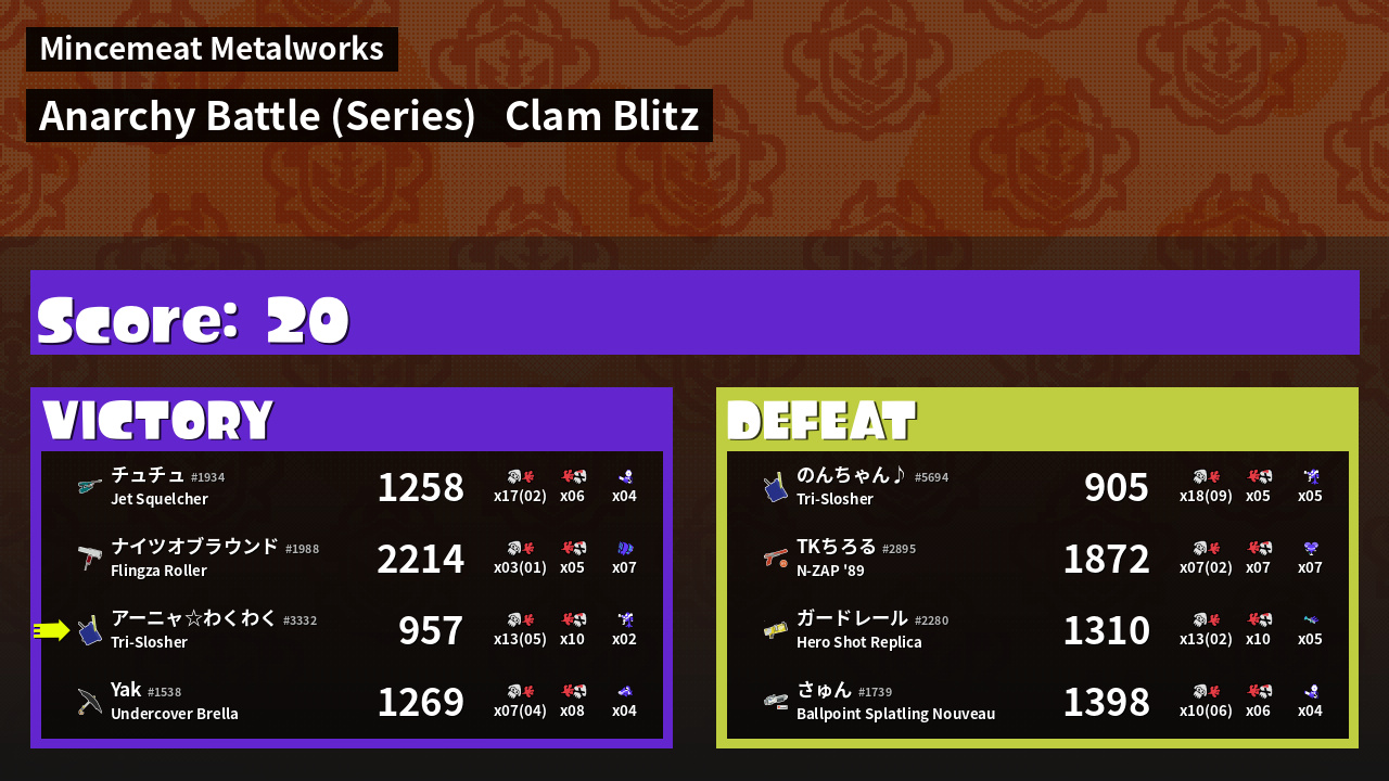 | Mode | Clam Blitz - Anarchy Battle (Series) | ||