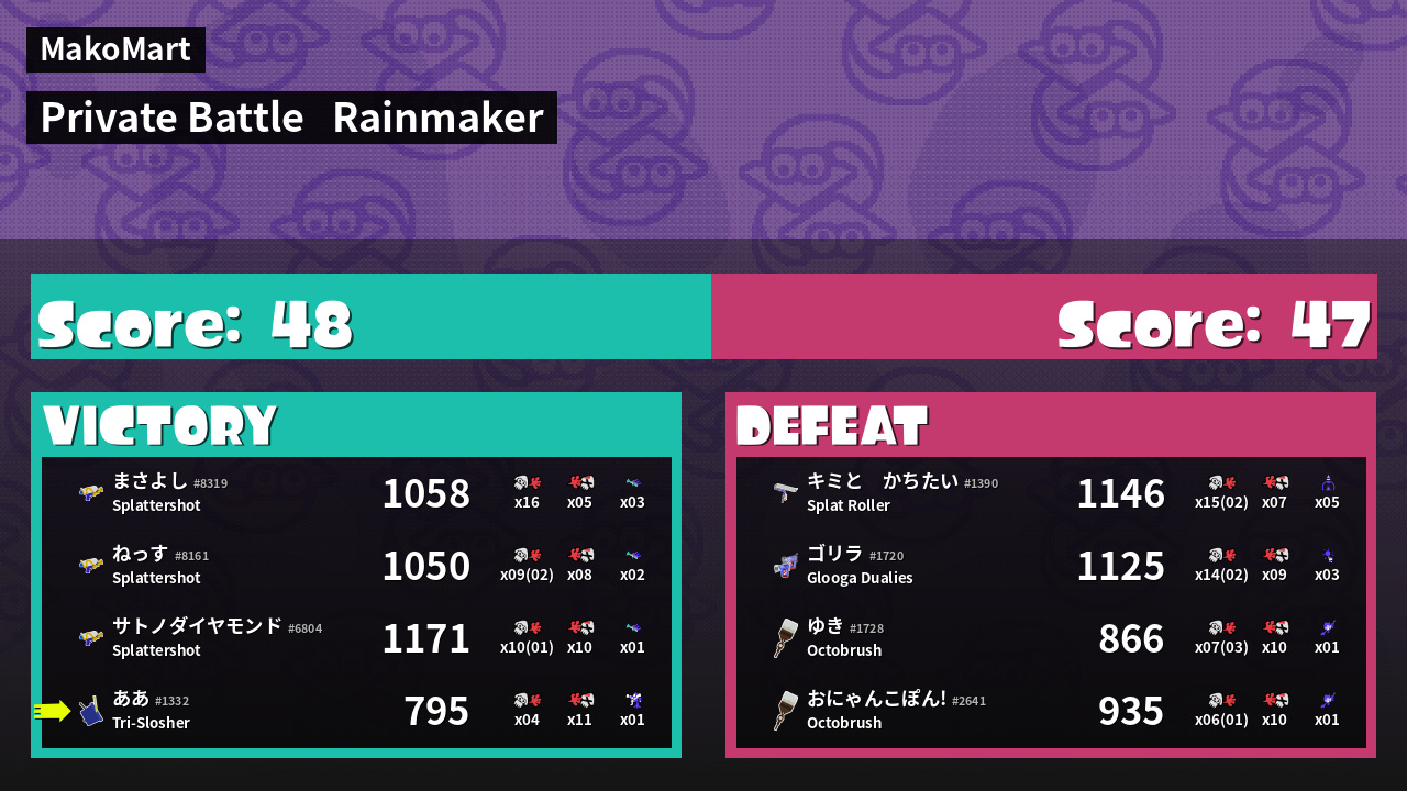 | Medals | #1 Rainmaker Stopper #1 Damage Taker #2 Score Booster | ||