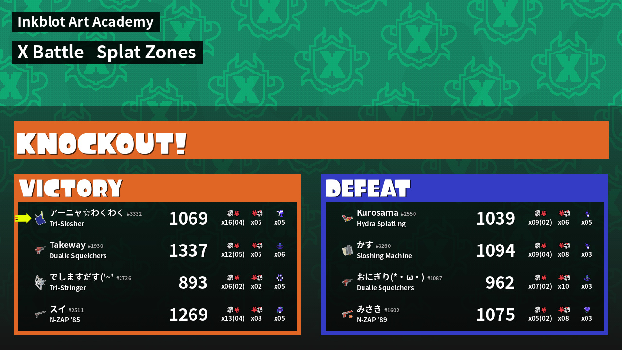 | Mode | Splat Zones - X Battle | ||