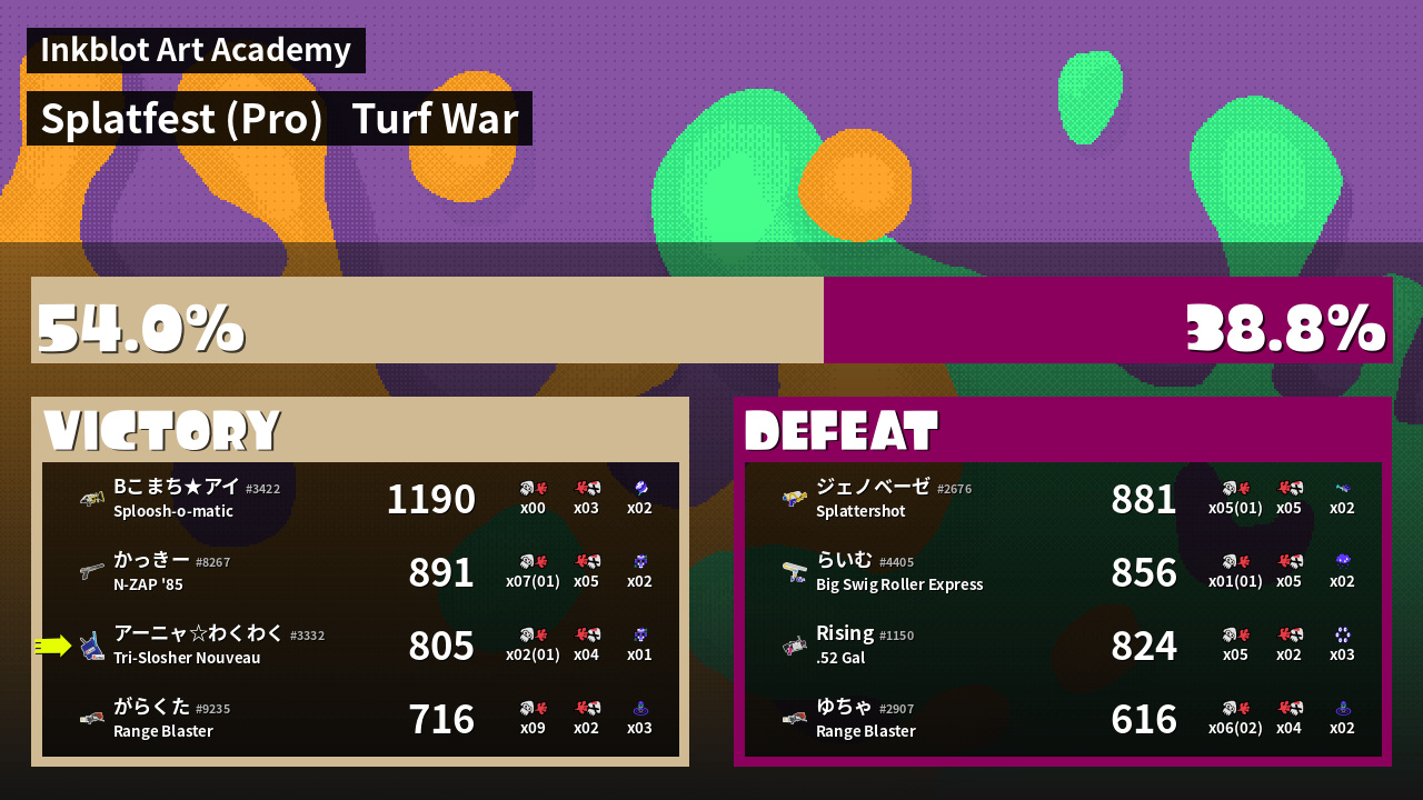 | Medals | #1 Splat Assister #1 Ink Consumer #2 Enemy-Base Inker | ||