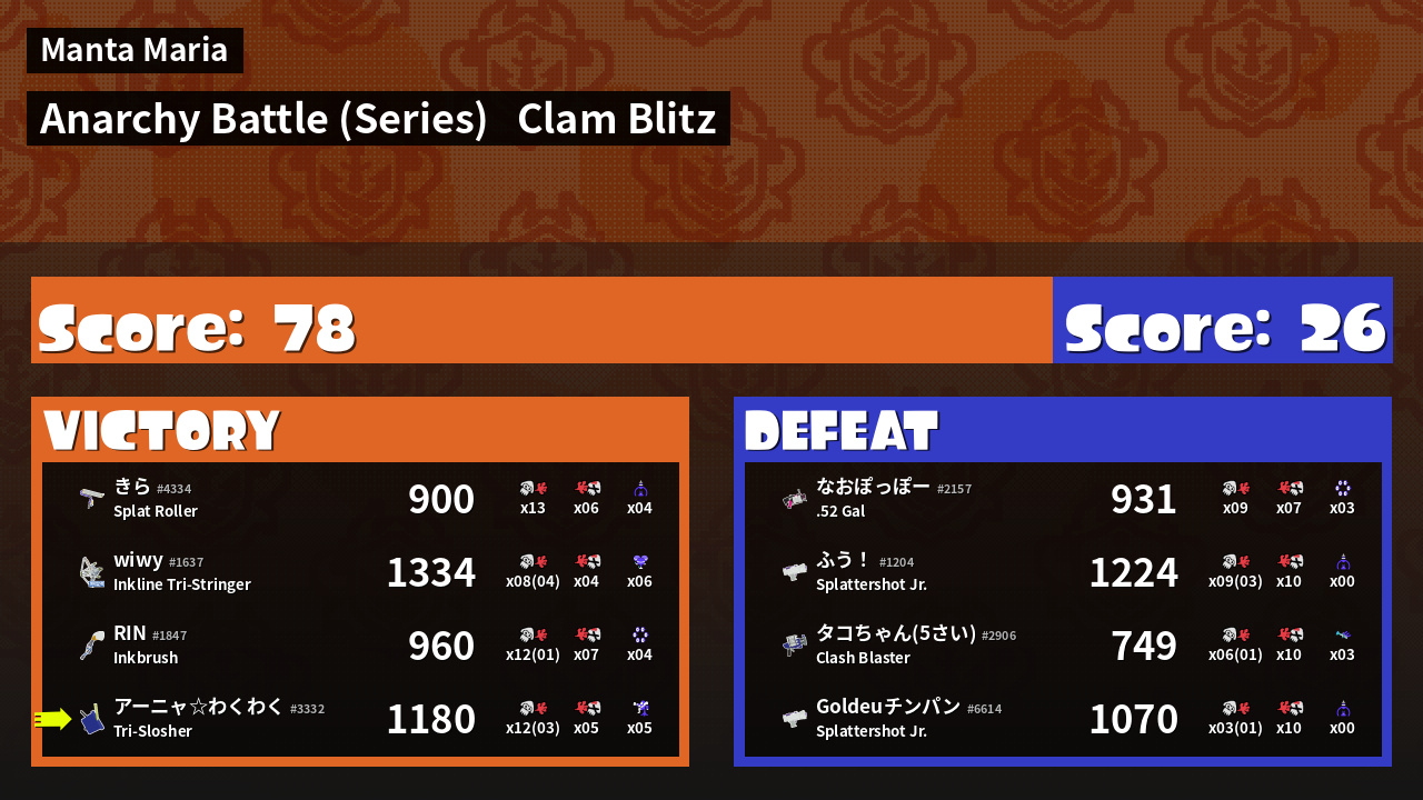 | Mode | Clam Blitz - Anarchy Battle (Series) | ||