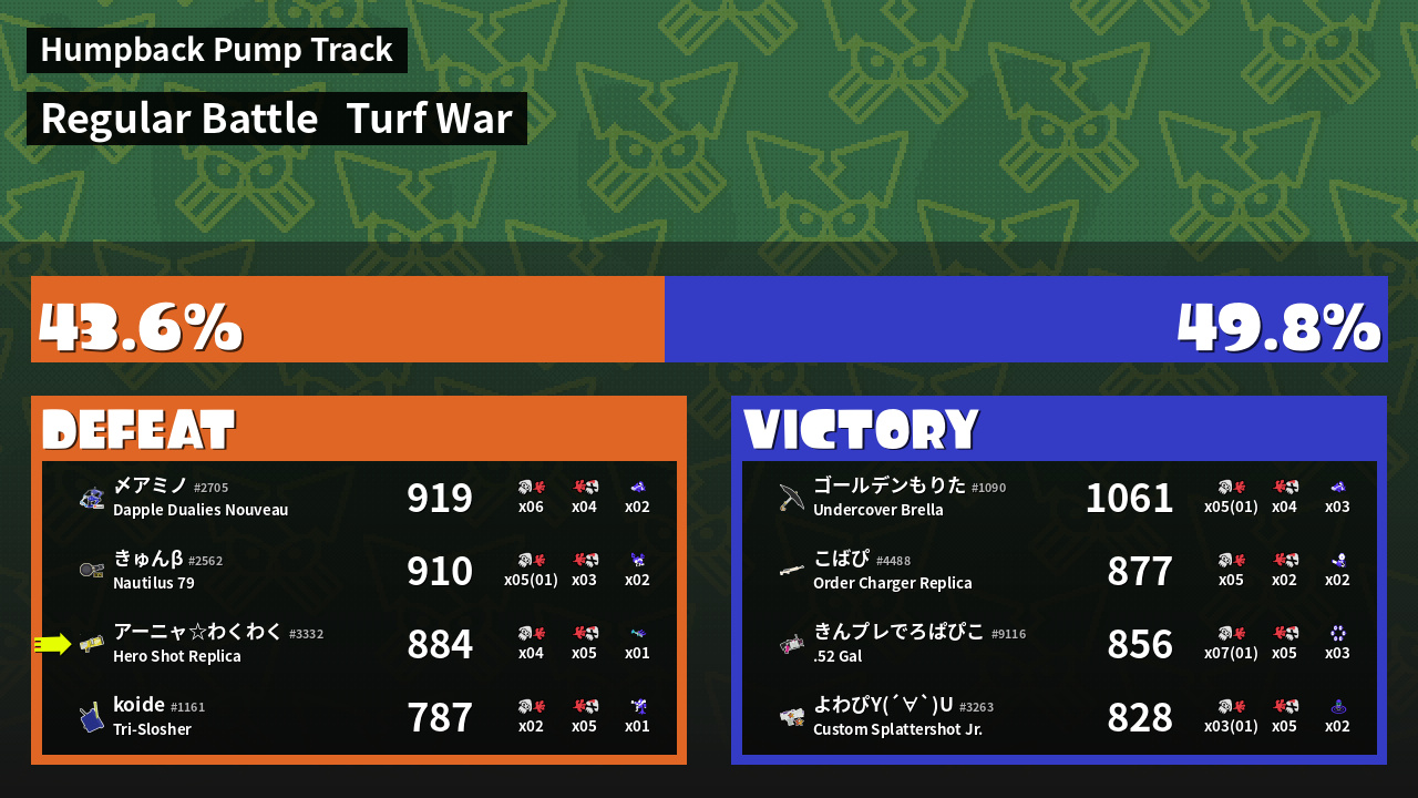 | Mode | Turf War - Regular Battle | ||