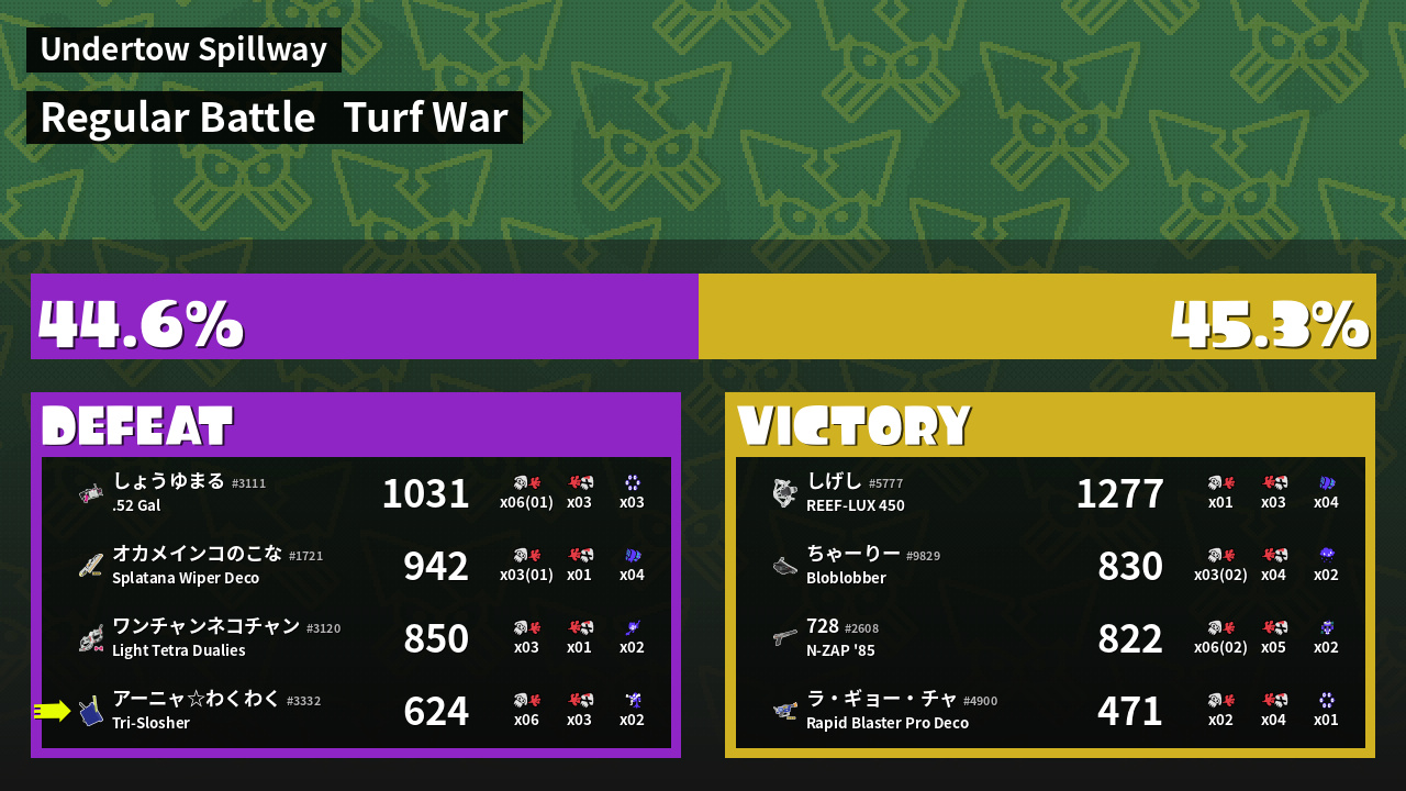 | Medals | #1 Overall Splatter #1 Enemy Splatter #1 Damage Taker | ||