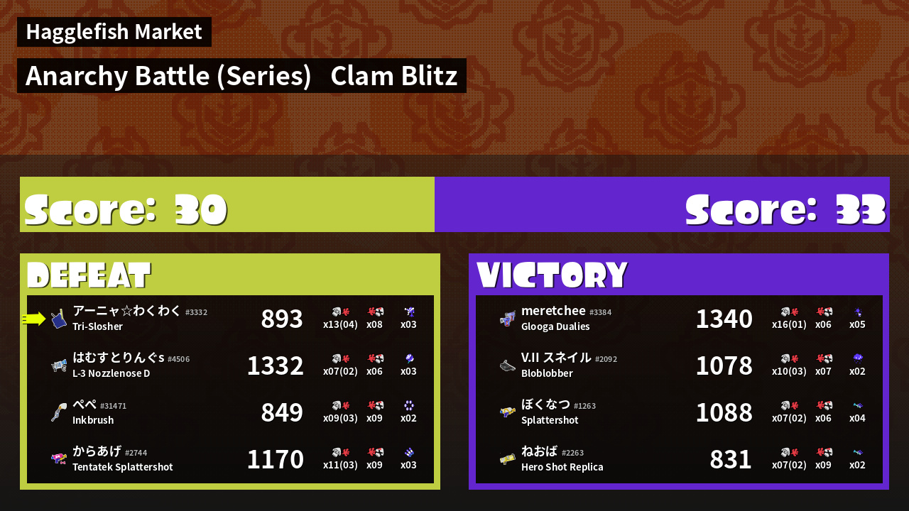 | Mode | Clam Blitz - Anarchy Battle (Series) | ||