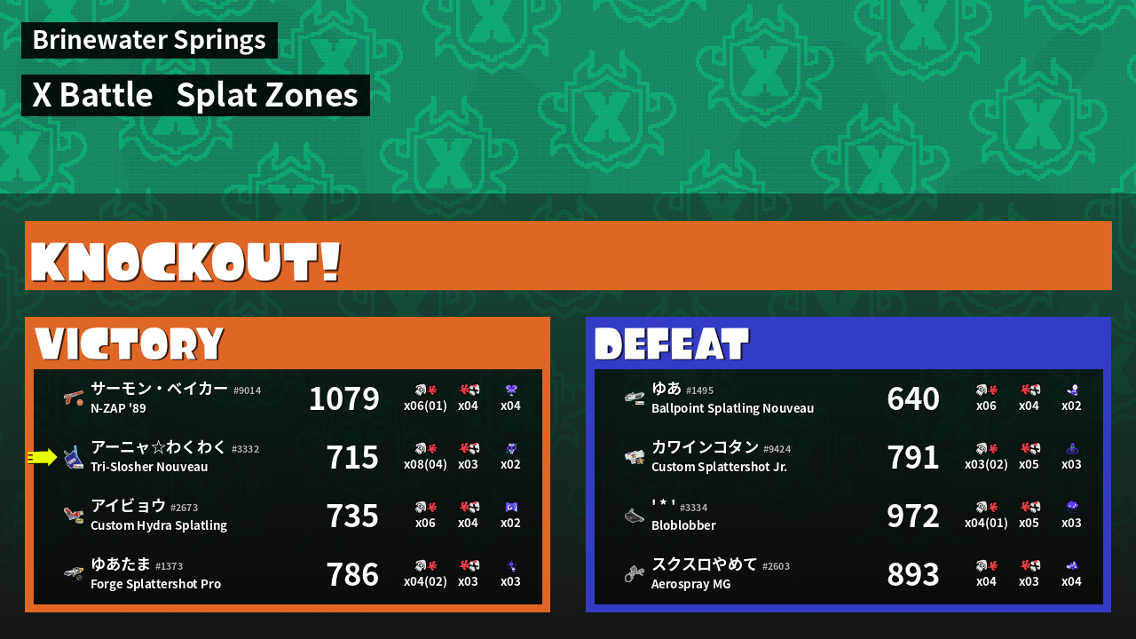 | Weapon | Tri-Slosher Nouveau ( Fizzy Bomb / Tacticooler) | ||