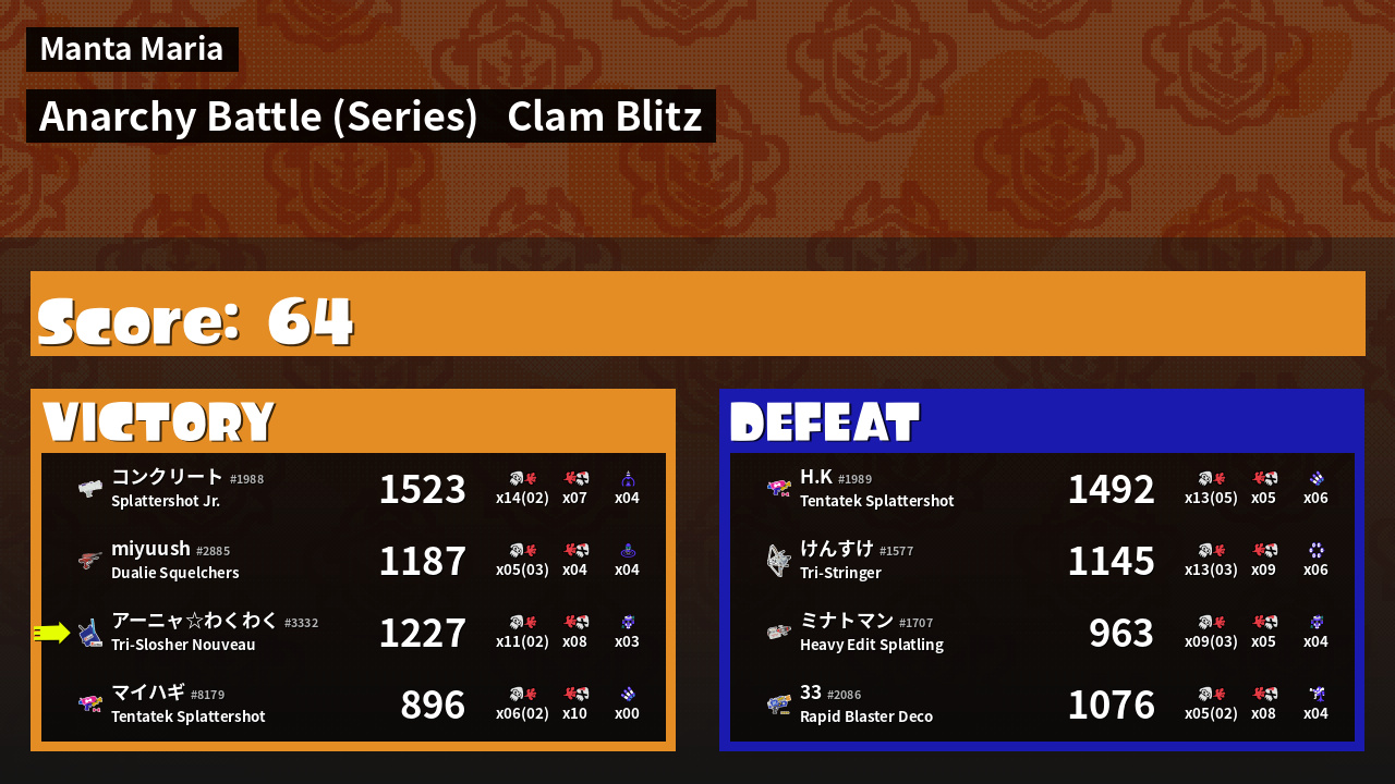 | Mode | Clam Blitz - Anarchy Battle (Series) | ||