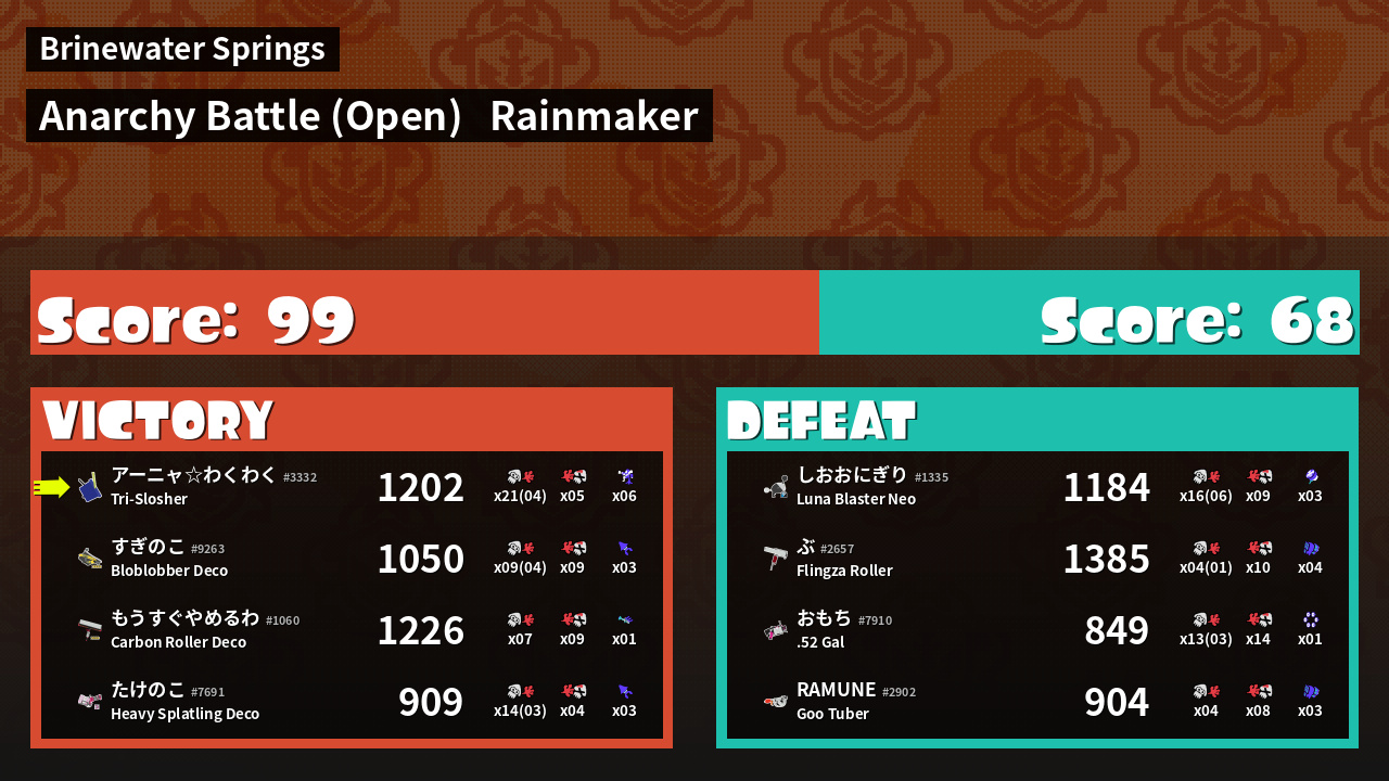 | Mode | Rainmaker - Anarchy Battle (Open) | ||