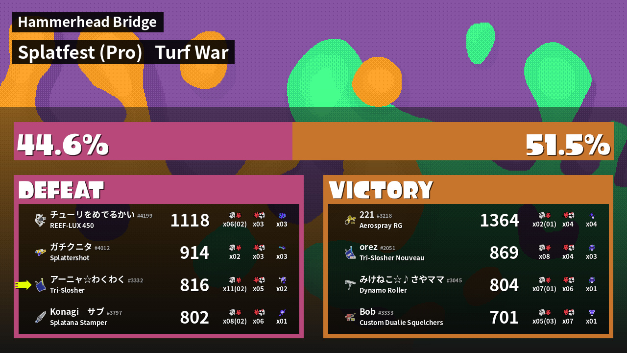 | Medals | #1 Overall Splatter #1 Enemy Splatter #1 Splat Assister | ||