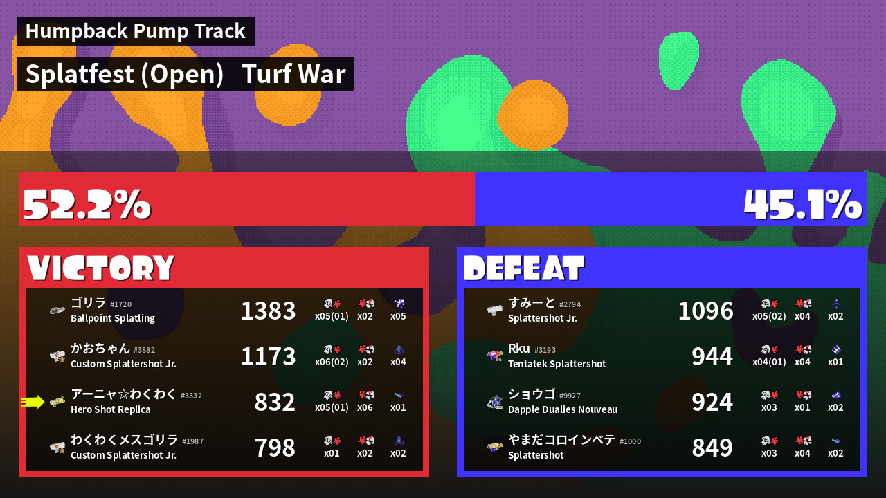 | Medals | #1 Enemy Splatter #2 Overall Splatter #2 Popular Target | ||