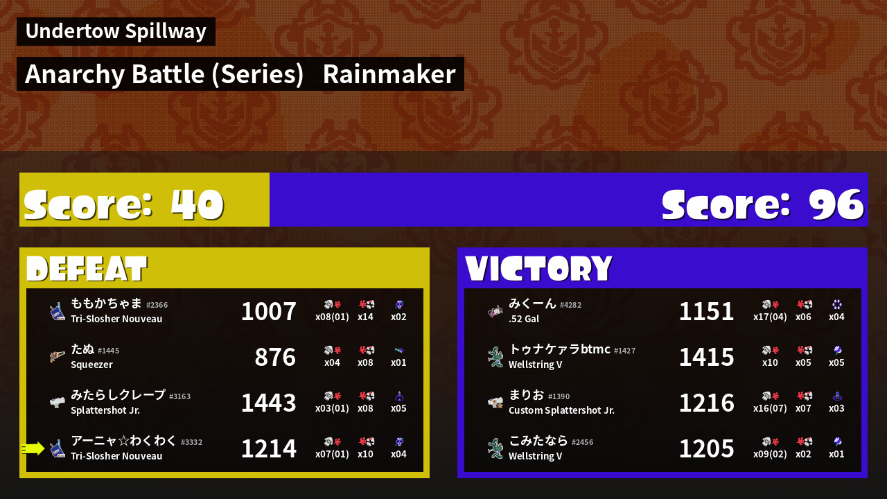 | Medals | #1 Popular Target #1 Splat Assister #1 Rainmaker Stopper | ||