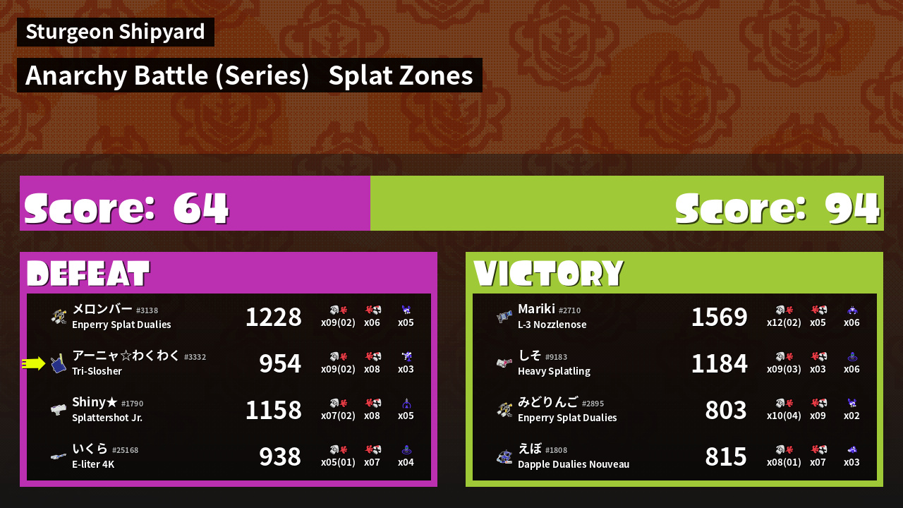| Mode | Splat Zones - Anarchy Battle (Series) | ||