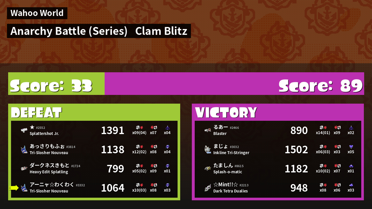 | Mode | Clam Blitz - Anarchy Battle (Series) | ||