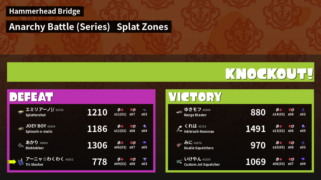 | Mode | Splat Zones - Anarchy Battle (Series) | ||