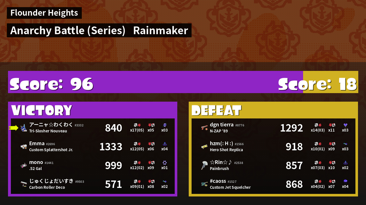 | Mode | Rainmaker - Anarchy Battle (Series) | ||