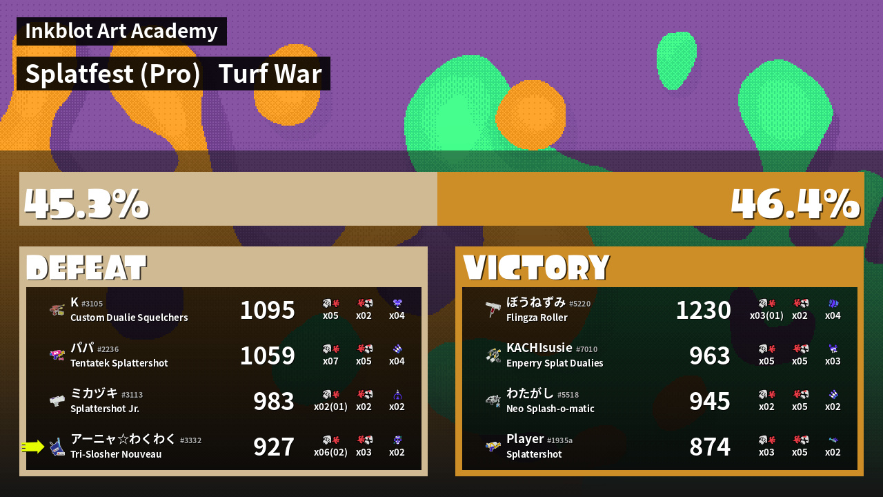 | Medals | #1 Splat Assister #2 Overall Splatter | ||