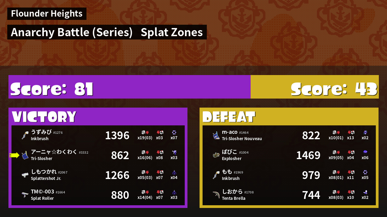 | Mode | Splat Zones - Anarchy Battle (Series) | ||