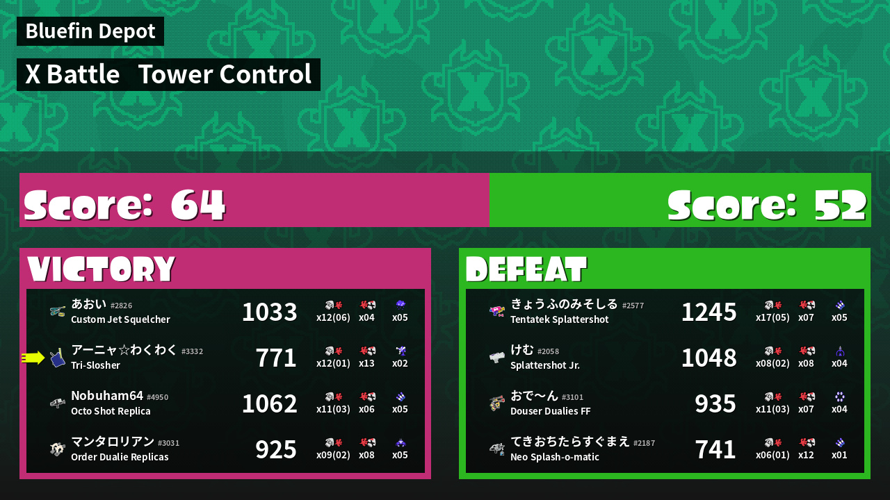 | Mode | Tower Control - X Battle | ||