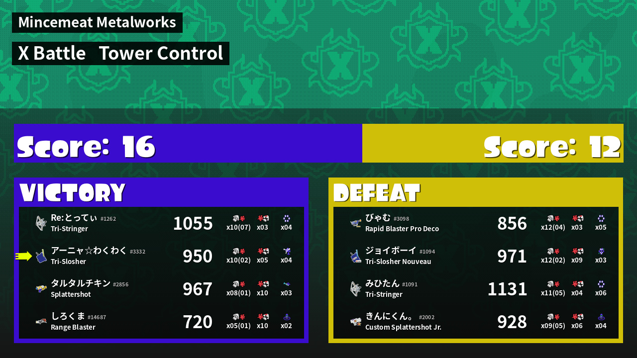 | Mode | Tower Control - X Battle | ||