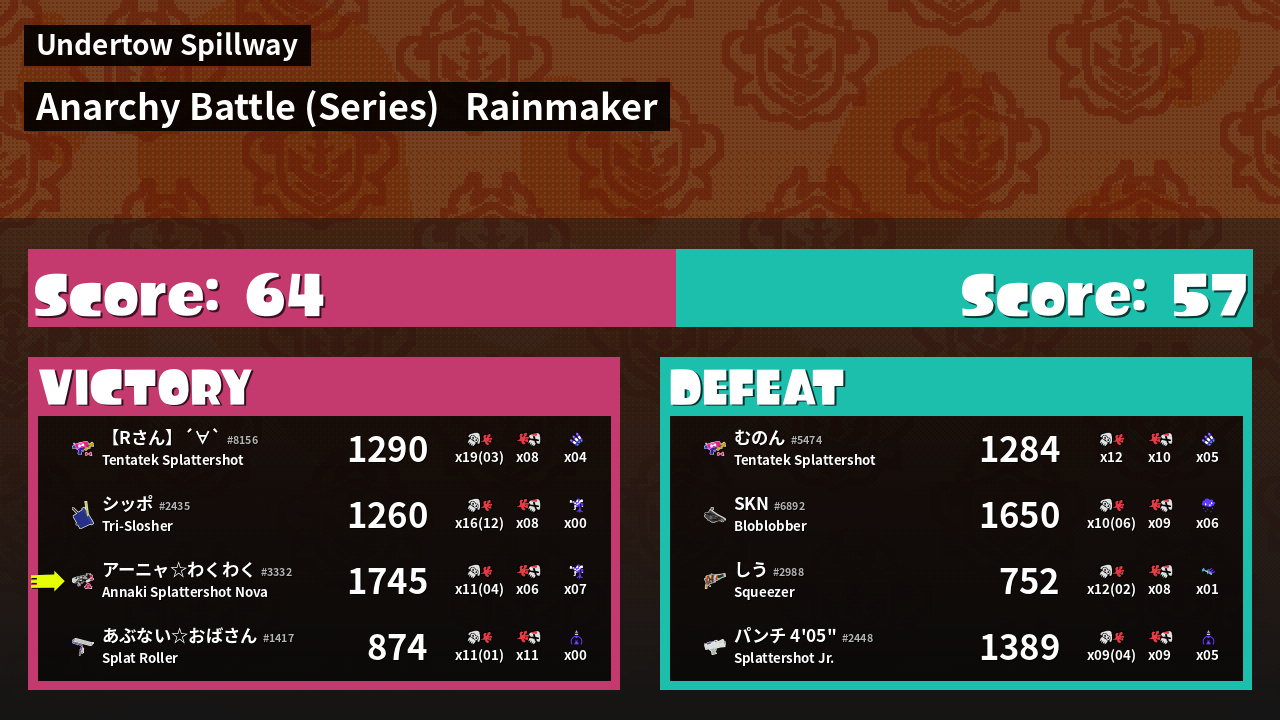 | Mode | Rainmaker - Anarchy Battle (Series) | ||