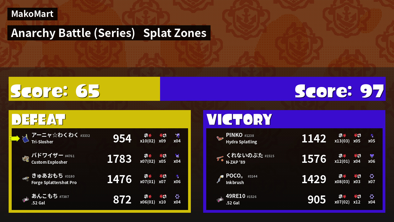 | Mode | Splat Zones - Anarchy Battle (Series) | ||