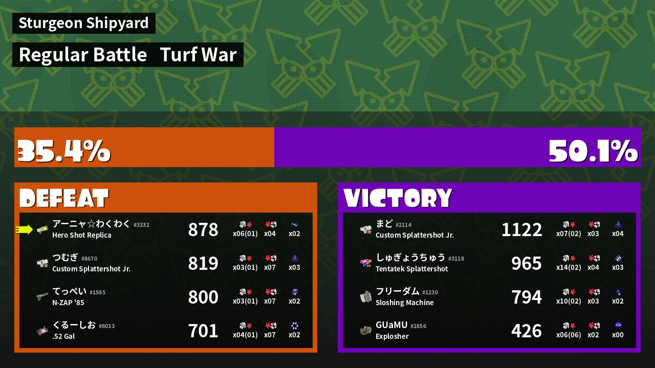 | Mode | Turf War - Regular Battle | ||