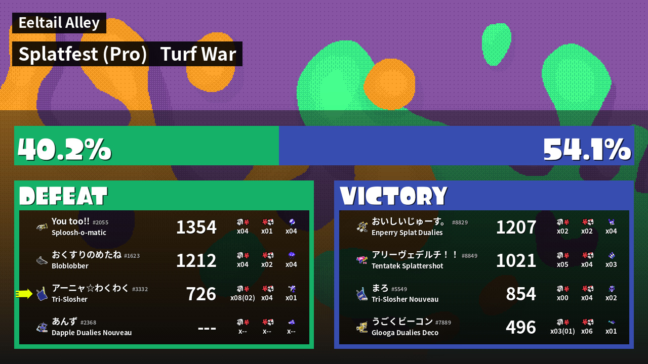 | Medals | #1 Overall Splatter #1 Enemy Splatter #1 Splat Assister | ||
