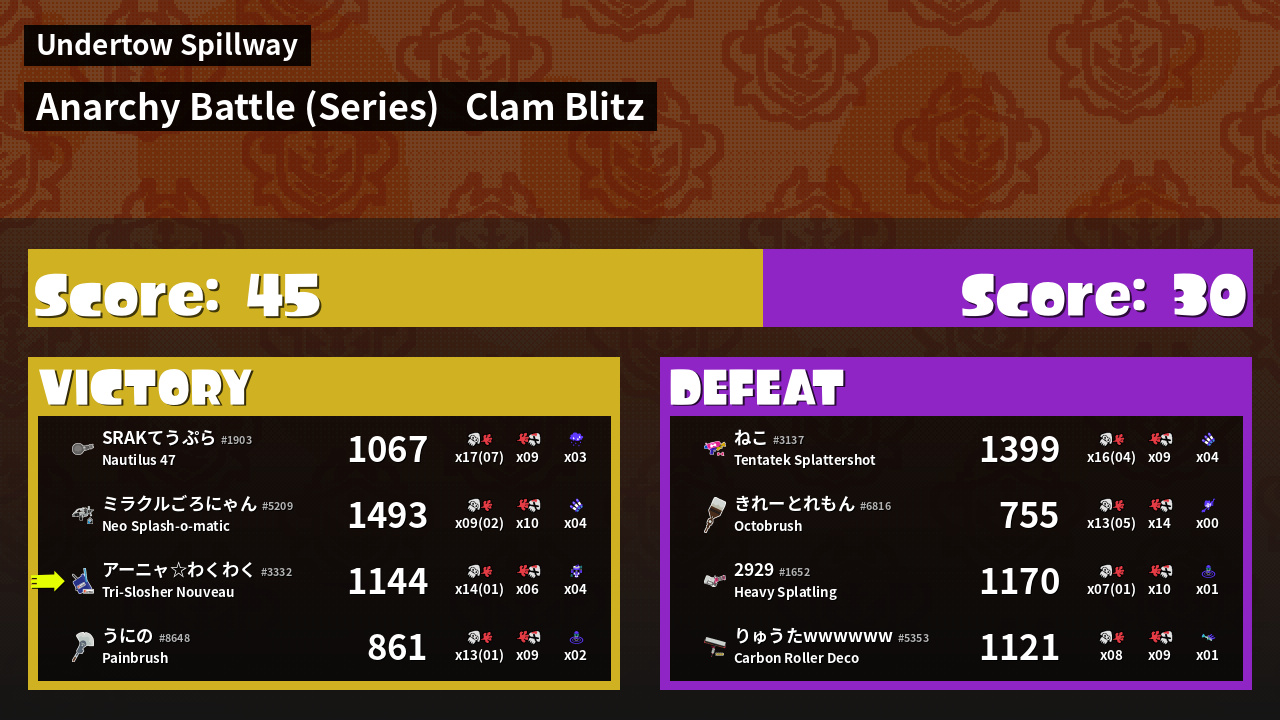 | Mode | Clam Blitz - Anarchy Battle (Series) | ||