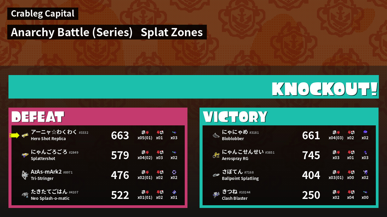 | Mode | Splat Zones - Anarchy Battle (Series) | ||