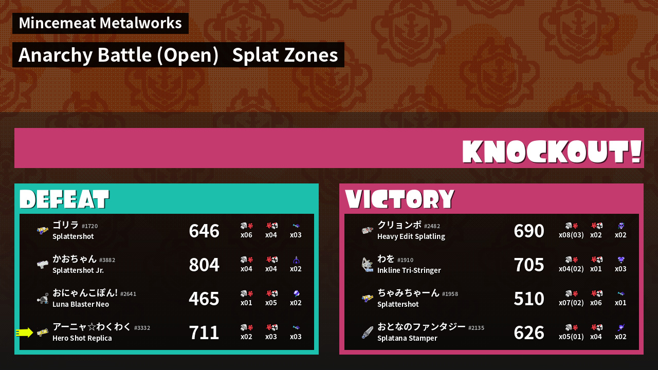 | Mode | Splat Zones - Anarchy Battle (Open) | ||