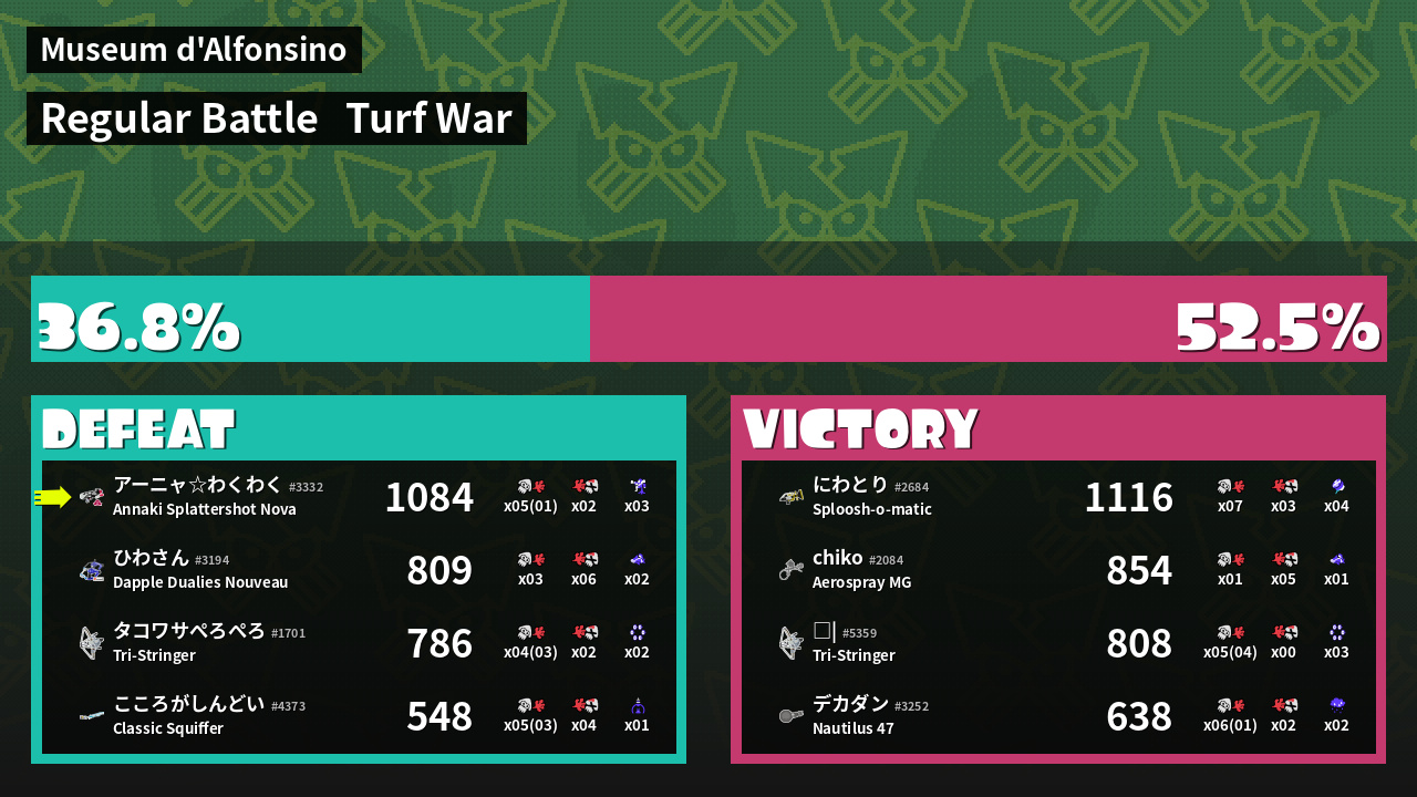 | Mode | Turf War - Regular Battle | ||