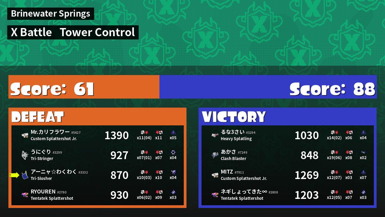| Medals | #1 Enemy Splatter First Splat! #1 Inkjet User | ||