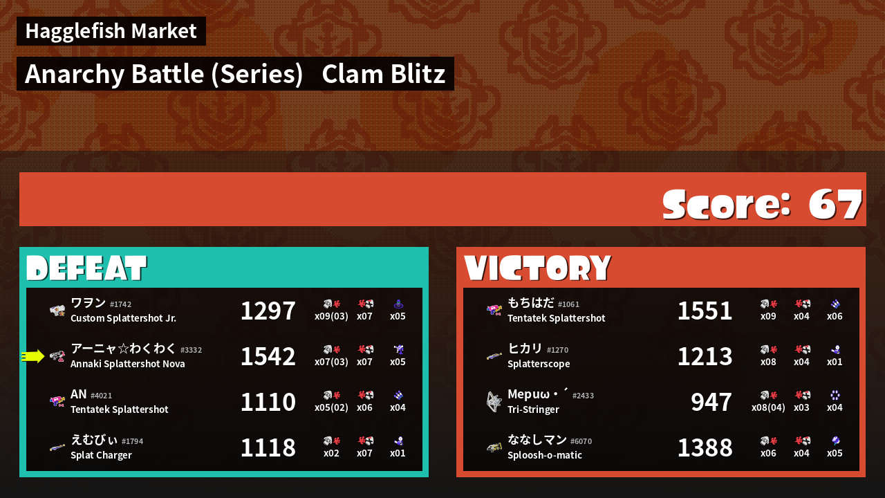 | Medals | #1 Turf Inker #1 Splat Assister #1 Clam Stopper | ||