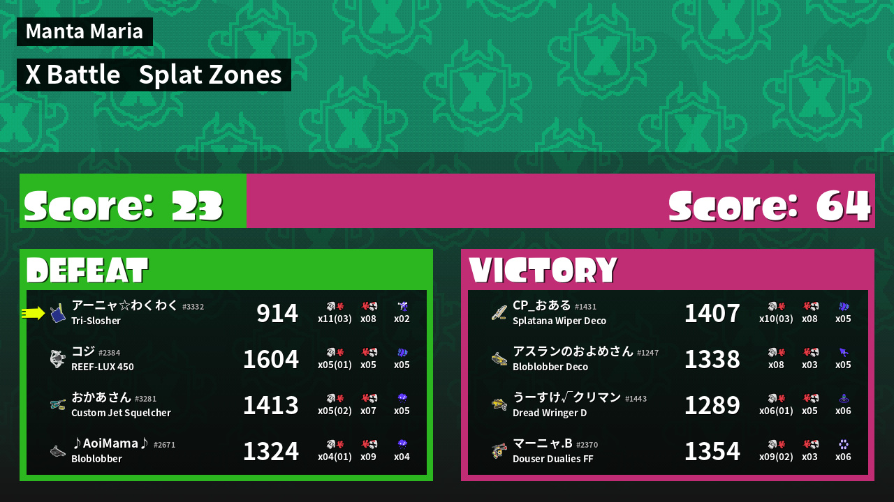 | Mode | Splat Zones - X Battle | ||