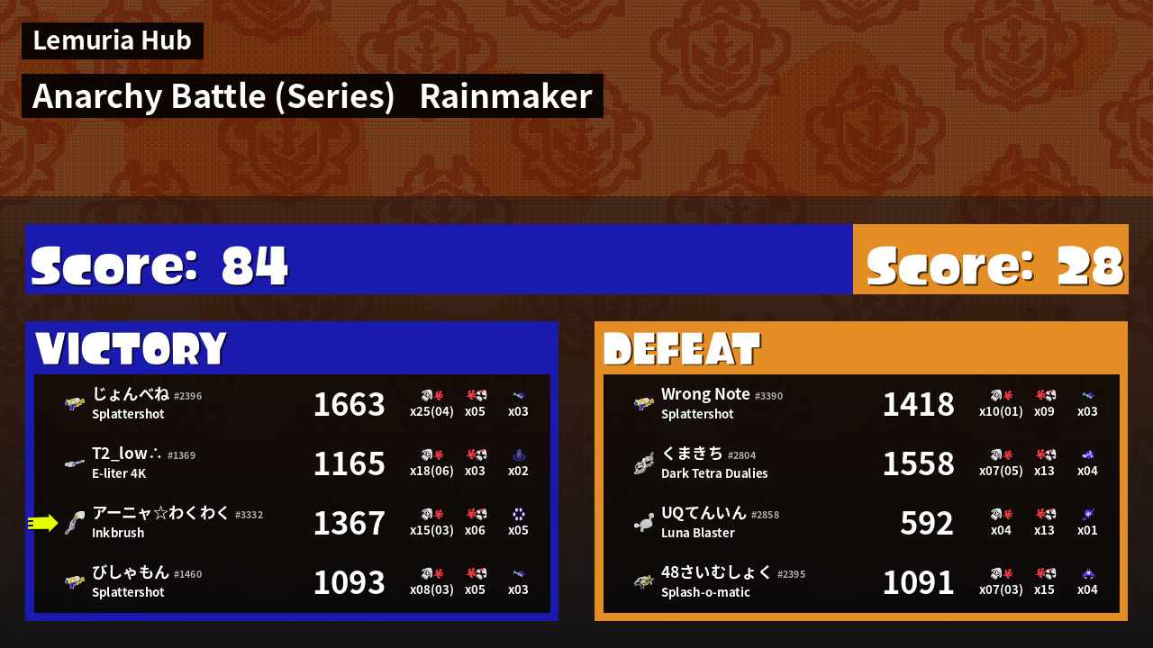 | Mode | Rainmaker - Anarchy Battle (Series) | ||