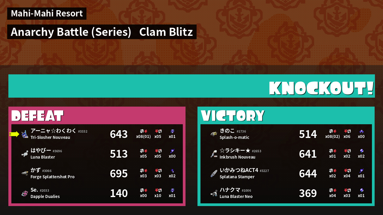 | Mode | Clam Blitz - Anarchy Battle (Series) | ||