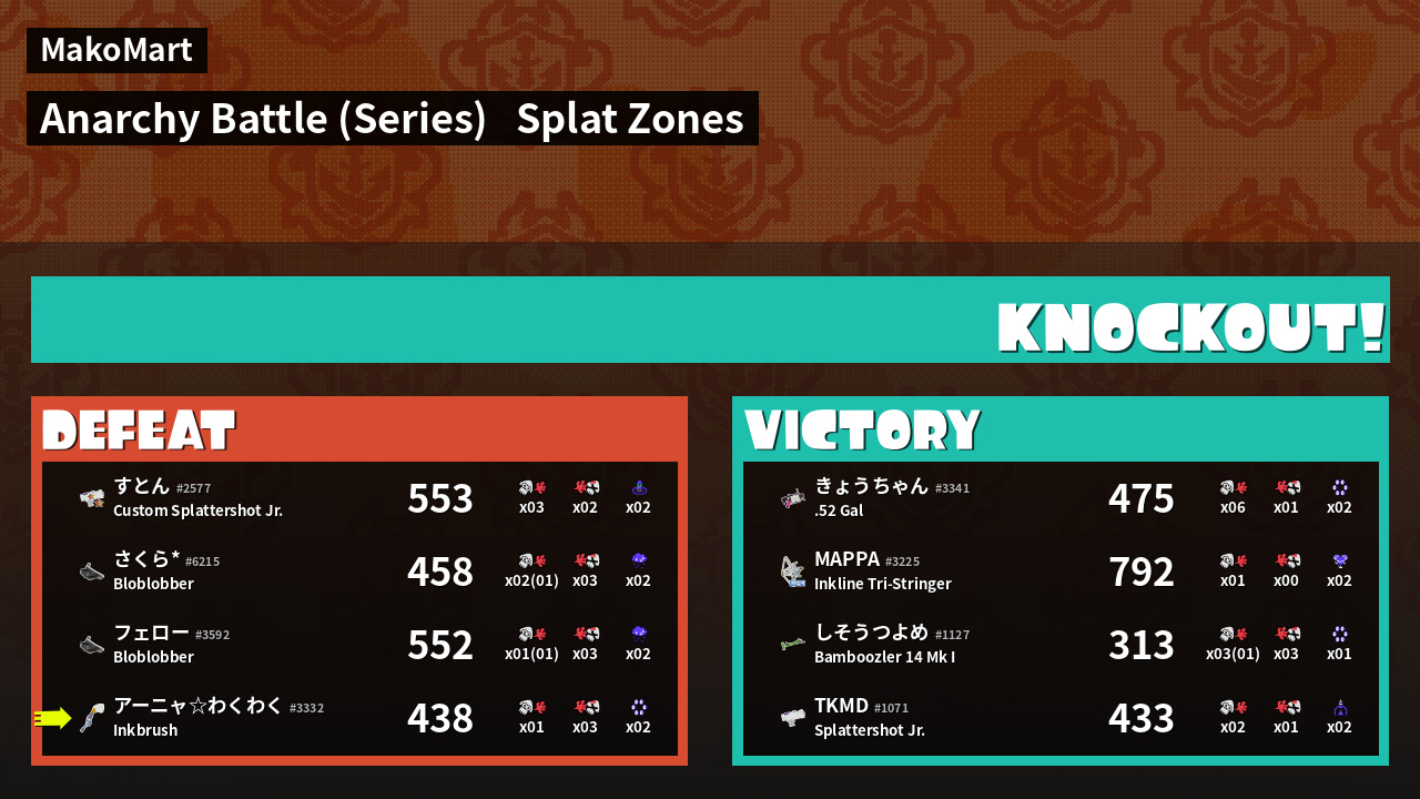 | Mode | Splat Zones - Anarchy Battle (Series) | ||