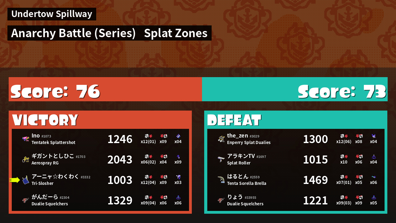 | Mode | Splat Zones - Anarchy Battle (Series) | ||