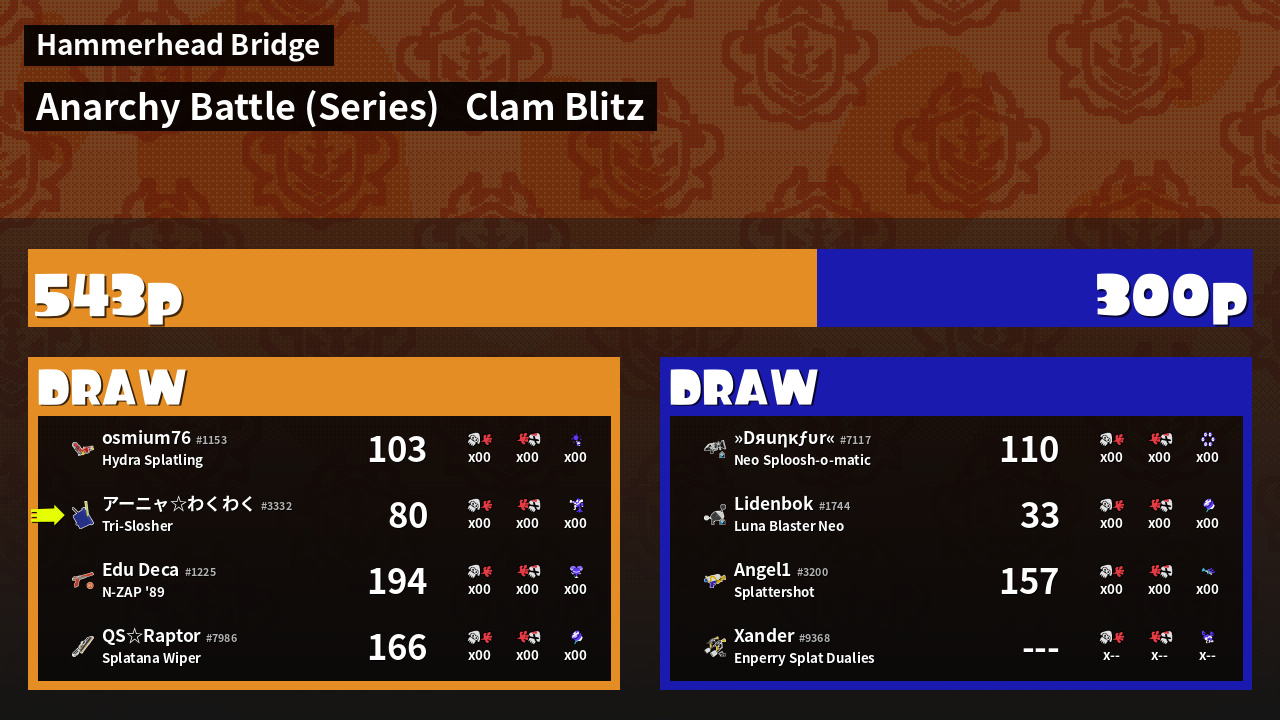 | Mode | Clam Blitz - Anarchy Battle (Series) | ||
