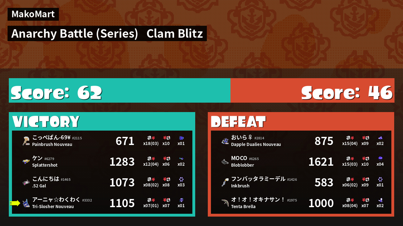 | Mode | Clam Blitz - Anarchy Battle (Series) | ||