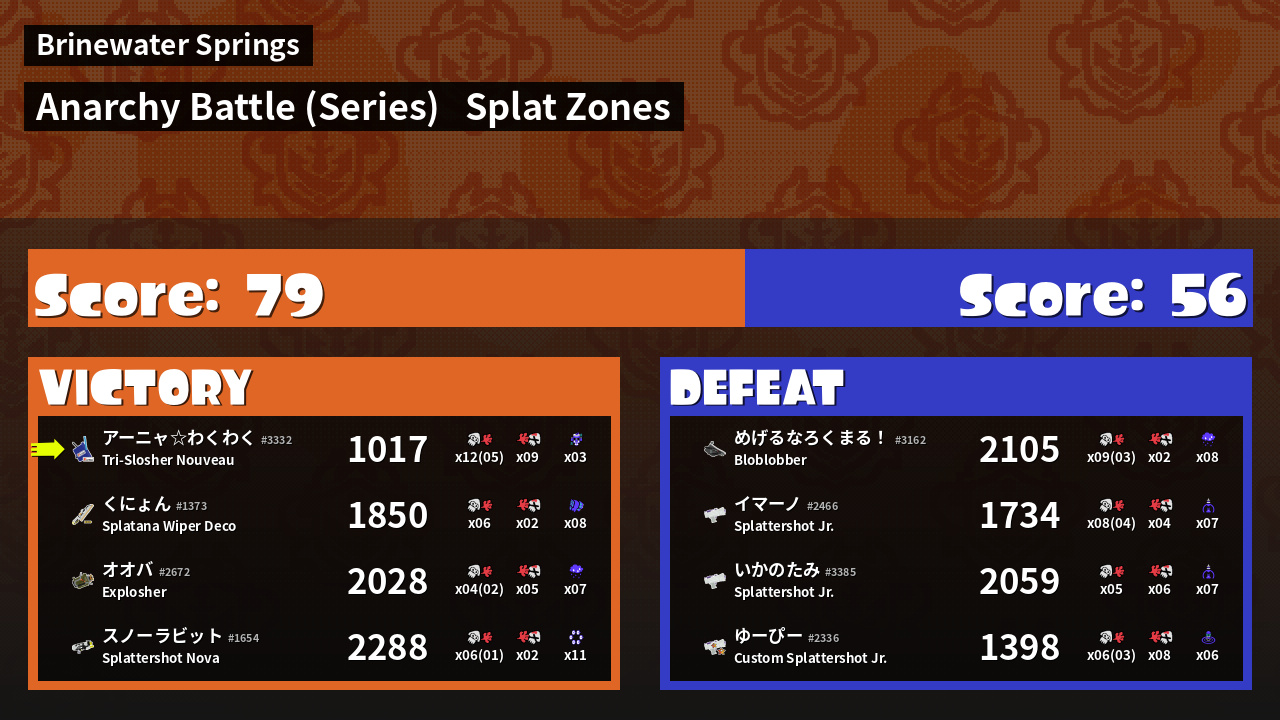 | Mode | Splat Zones - Anarchy Battle (Series) | ||