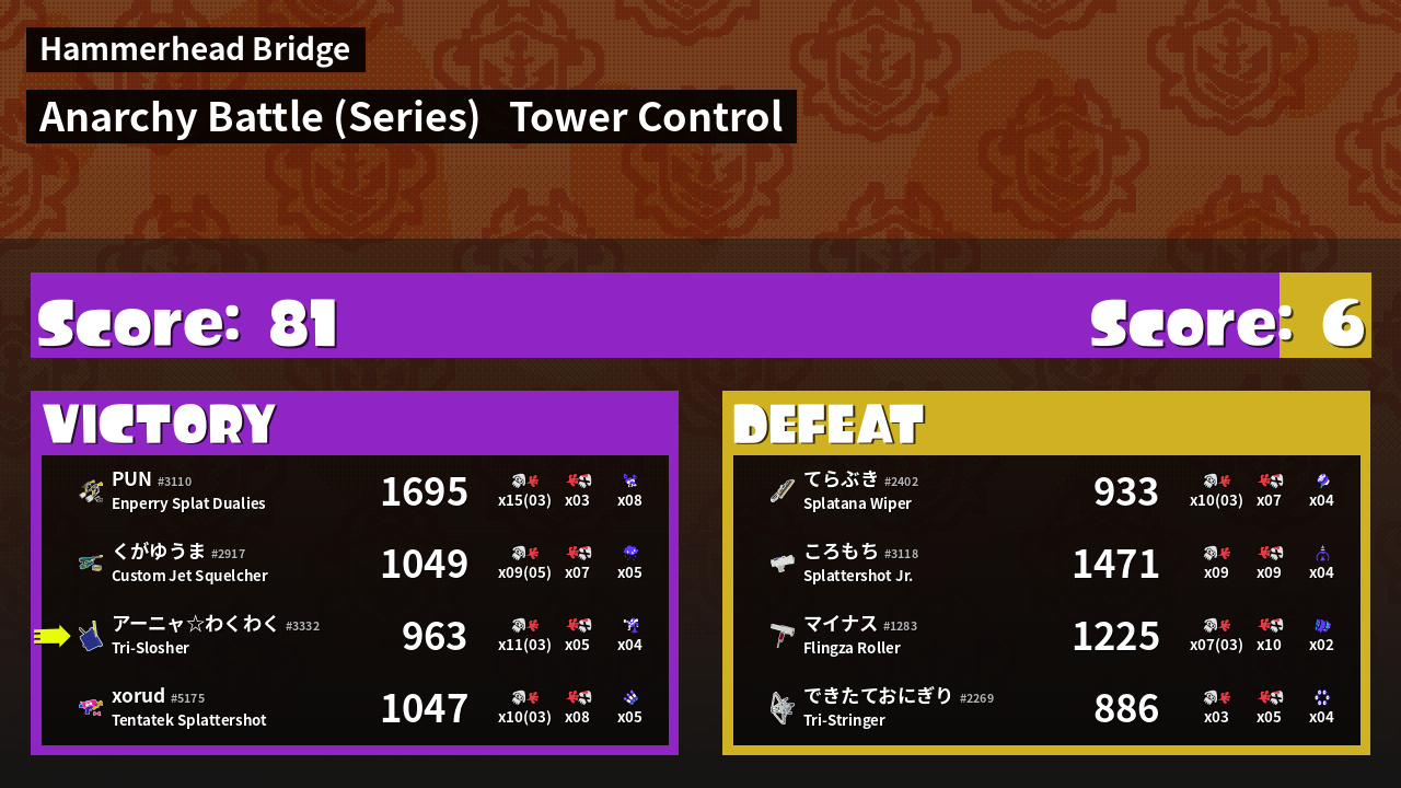 | Mode | Tower Control - Anarchy Battle (Series) | ||