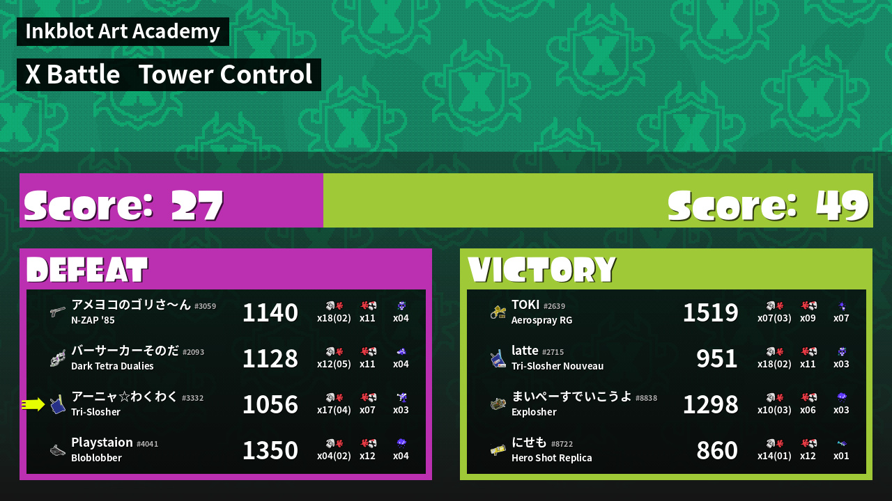| Mode | Tower Control - X Battle | ||