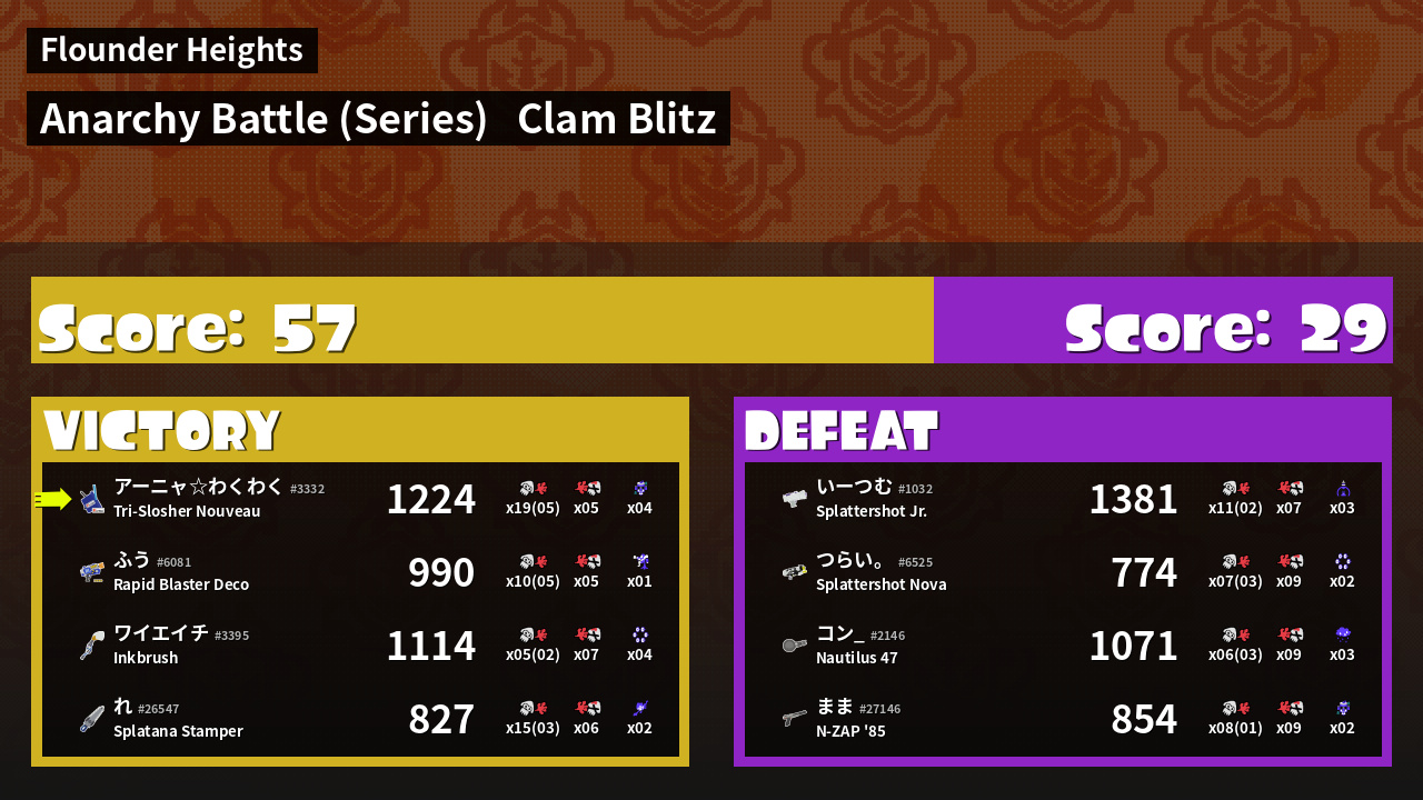 | Mode | Clam Blitz - Anarchy Battle (Series) | ||