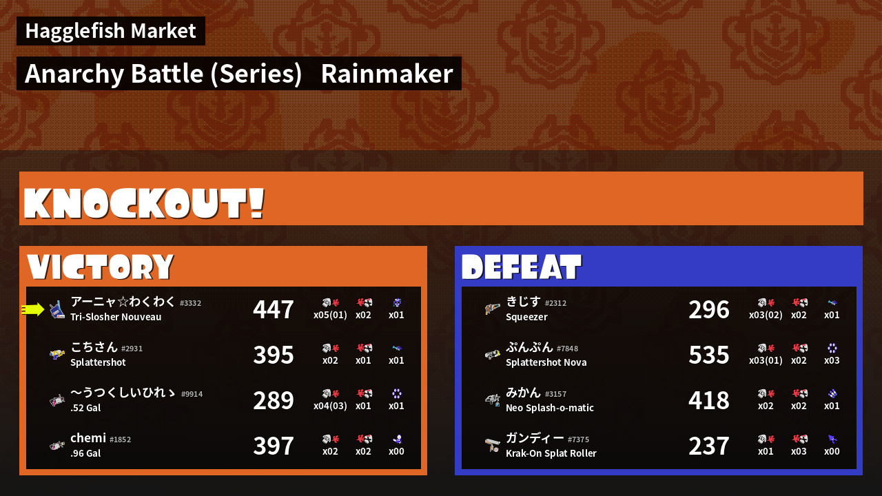 | Medals | #1 Overall Splatter #1 Turf Inker #1 Popular Target | ||