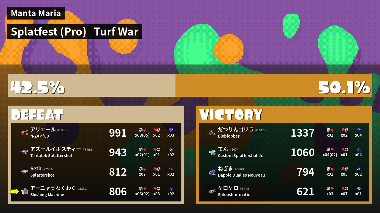 | Mode | Turf War - Splatfest (Pro) | ||