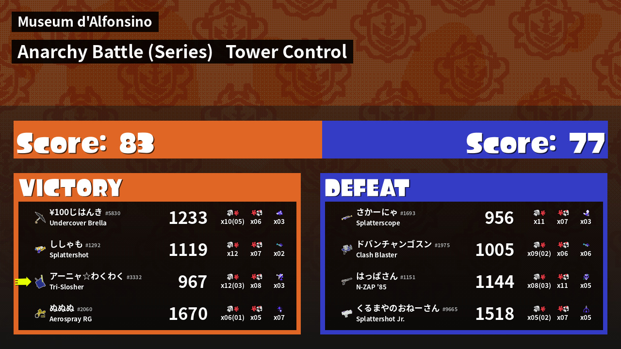 | Mode | Tower Control - Anarchy Battle (Series) | ||