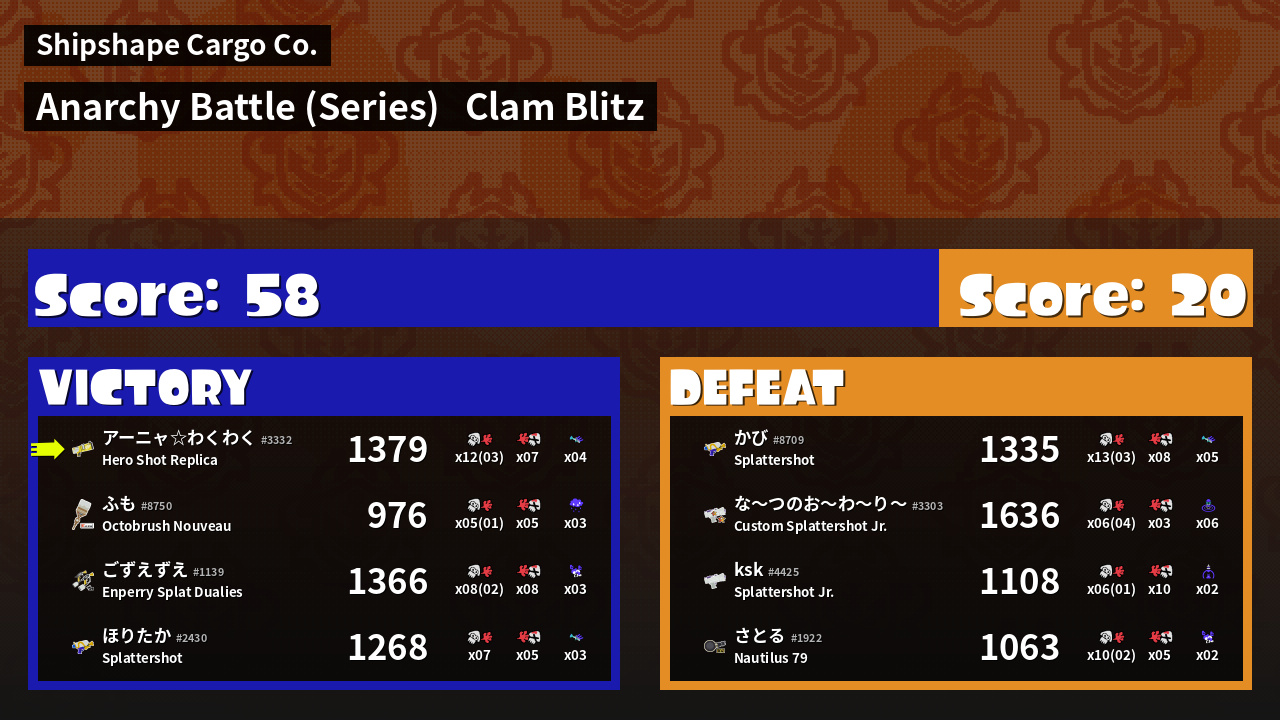 | Mode | Clam Blitz - Anarchy Battle (Series) | ||