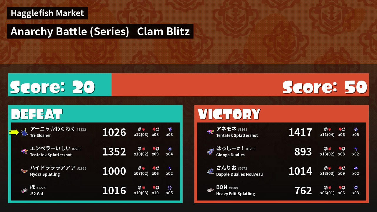 | Mode | Clam Blitz - Anarchy Battle (Series) | ||